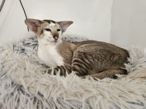 Our boy is a seal tabby pointed with white bicolour. OSH N 03 21 33