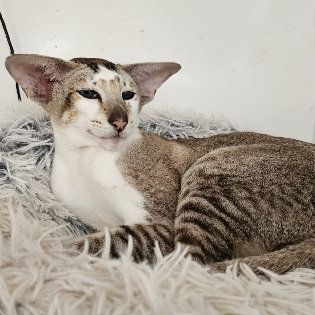 Oriental Cats Orientals are long, lithe and elegant with beautiful expressive green eyes with exception of pointed bicolour’s which have blue eyes, About Oriental Cats Intelligent, highly social and loving breed.